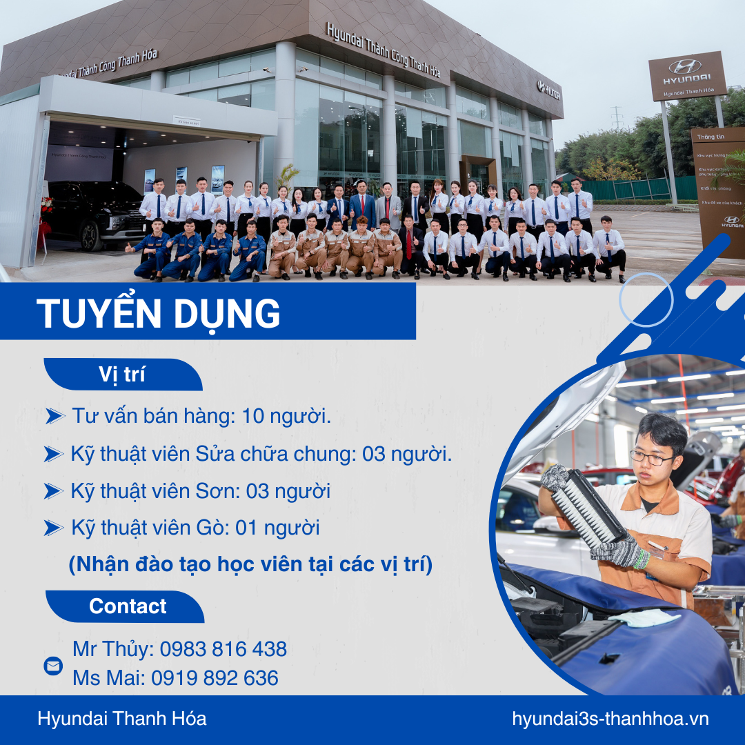HYUNDAI THANH HÓA cần tuyển dụng những vị trí: