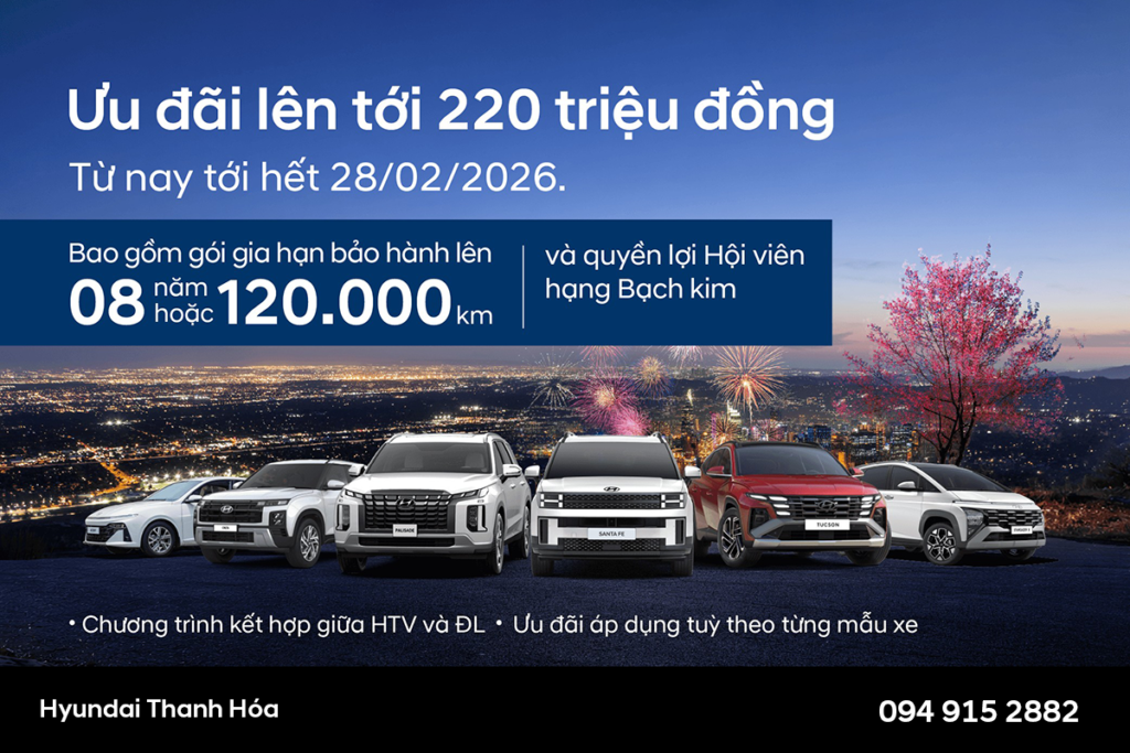 Chương trình khuyến mại đặc biệt “Mua xe như ý – Đón xuân phú quý” với tổng giá trị ưu đãi lên tới 220 triệu đồng cùng nhiều quyền lợi giá trị dành cho khách hàng mua xe Hyundai.