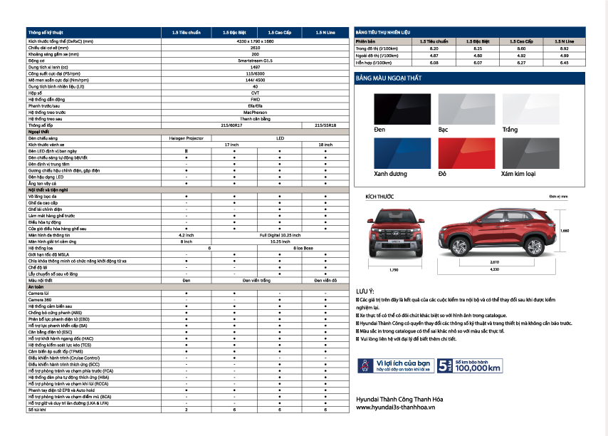 | Giá xe Hyundai Creta Tiêu chuẩn | 599,000,000 VNĐ |